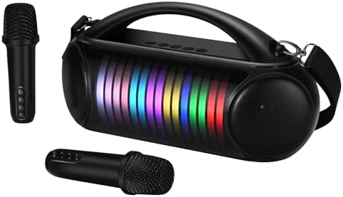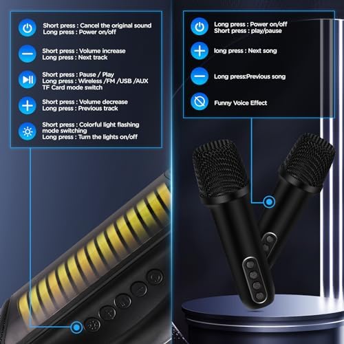 【Powerful Karaoke Speaker&Quality Sound】Protable Bluetooth Karaoke Speaker/Machine + 2 Wireless Microphones.Bluetooth distance: 10 Meters.30W high performance stereo speaker provide clearer and lound sound.Perfect Birthday or festival gift for your kids,friends or family
