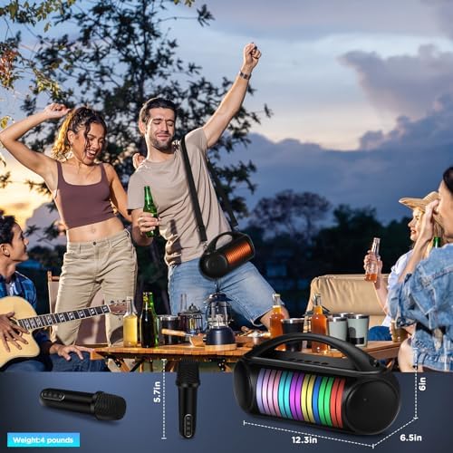 【Large LED Area&Dynamic Mode】This karaoke speaker has 3 types of light modes.It can change with the rhythm of music,lights pattern povide the more romantic,funny and karaoke party environment.You can also long press the LED button to turn off light.Suitable for adults and children as holiday gifts
