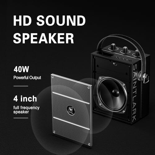 PORTABLE & EASY TO USE – The 40W voice amplifier is designed to be portable and user-friendly, featuring a vintage appearance and a sturdy metal casing. Equipped with a soft handle and adjustable shoulder strap, the S98 is perfect for on-the-go use. Operating this amplifier is effortless, with simple and intuitive buttons for adjusting microphone/speaker volume and echo effects, making it an ideal choice for teachers, public speakers, or anyone seeking a versatile and easy-to-use amp solution.