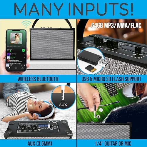 KARAOKE READY WITH MIC INPUT: A built-in ¼” microphone input allows for karaoke or announcements, complete with echo adjustments. Tailor your sound with the bass and treble controls. It’s ideal for interactive entertainment or public speaking.