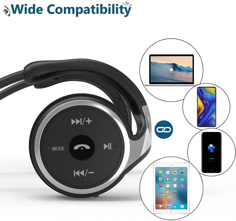 [Bluetooth 5.0 Technology]: The behind head bluetooth headphones is designed with advanced bluetooth chipset, ensuring faster transmission and stable signal connection, it can compatible with all kinds of bluetooth enabled device, such as cell phone, tablet and etc. The bluetooth connection range is about 33ft, gives you handsfree phone call and music experience.