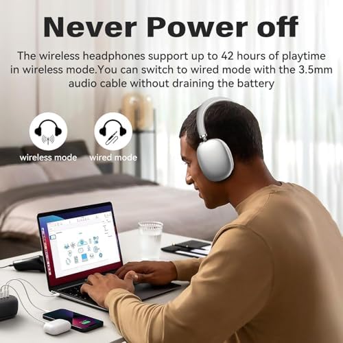 【42 HOURS PLAYTIME & DUAL MODE】 Up to 42 hours playtime with a single quick charging, Twshouse Wireless Heaphones can be full charged within 1.5 hours. After 42 hours playtime, you can switch Twshouse Bluetooth Headphones from wireless mode to wired mode to immerse yourself in the music without interruption. It is the best choice for long trips, sports and relaxation.