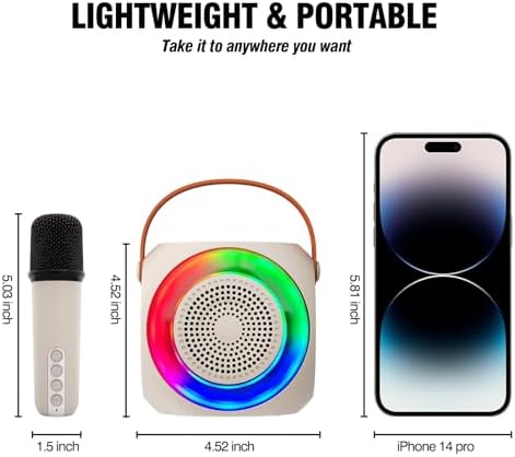 Kids Karaoke Machine, Mini Bluetooth Karaoke Speaker with 2 Wireless Microphone and LED Lights for Adults, Birthday Gifts for Girls/Boys Ages 4, 5, 6, 7, 8, 9, 10, 12+(Beige)
