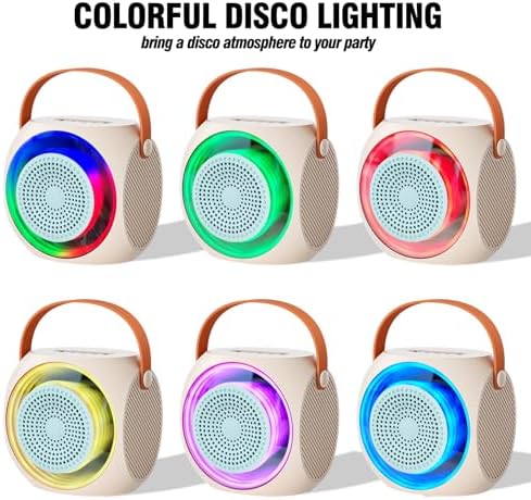 Light Modes for Fun Parties: Kids karaoke machine is equipped with colorful disco lights that have an independent button to turn on and off.The built-in 6 lights modes, creating an immersive and dynamic karaoke experience. Perfect for adding excitement and energy to any party or gathering, the compact karaoke machine with LED lighting effects will keep your guests entertained and engaged all night long.