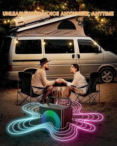 Mini Karaoke Machine with 2 Wireless Microphones for Kids – Adult Portable Car Bluetooth Sing Song Speaker with Handle – Teens Boys Party Light Music Player Rechargeable for Children | Black
