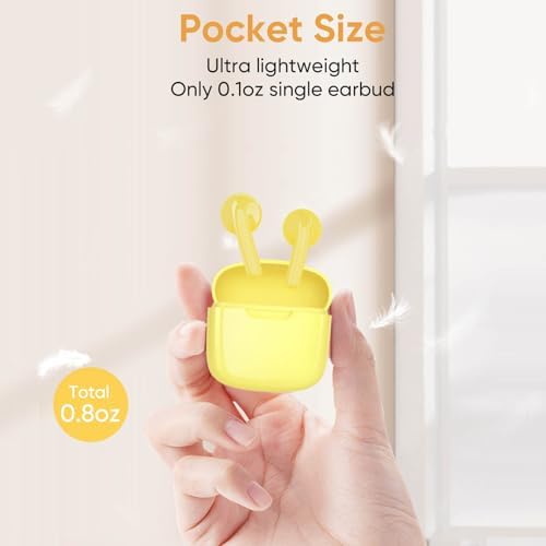 💛【New Design & Compact Size – Bluetooth 5.3】Enjoy the latest in Bluetooth tech with our earpods featuring Bluetooth 5.3. Stable Type C connection, faster speeds, lower power usage. Say goodbye to sound delays, clearer calls. Perfect for gaming or live performances. Super comfortable – each earphone weighs 0.1oz, no ear strain. Binaural set with charging case only 24.5g, compact, and easy to carry.