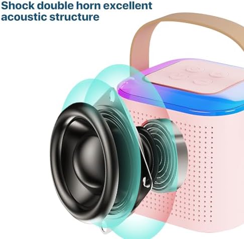 ♪【Multifunctional Bluetooth System, Providing Stable Transmission Range】: Mini karaoke machine for kids come with newly upgraded Bluetooth 5.0 technology, which ensures instant pairing and provides a more stable transmission and longer distance up to 32ft. This portable karaoke machine also supports Micro TF card, Flash USB, and AUX-in connectivity, making it compatible with a range of devices like mobile phones, iPads, tablets, and PCs.
