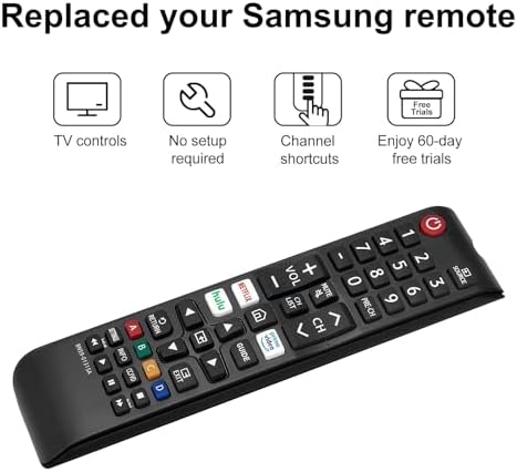 One-Touch Access: The Control Remote for Samsung Smart TV with 3 dedicated shortcut buttons for Netflix/Hulu/Prime Video, allowing you to instantly access your favorite streaming services. Replacement for All Samsung TV Remote simplifies navigation and enhances your viewing experience.