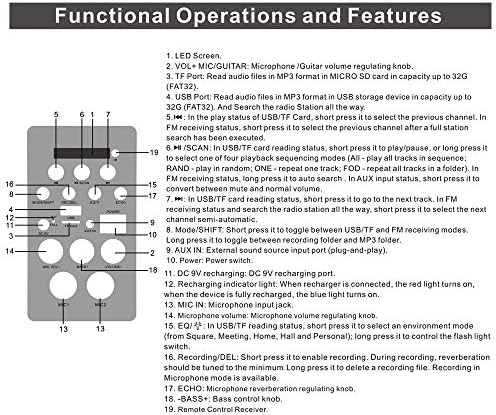 【AUDIO CONFIGURATION AND RECORDING】Support FM radio and REC, USB/TF card input. FM radio. By connecting a microphone (not included) and plug a USB/TF card (not included), you can record your voice while singing. Guitar inputs, adjustable reverb, voice, Karaoke function. Easy, simple, plug-and-play performance with simple controls.