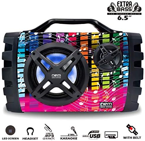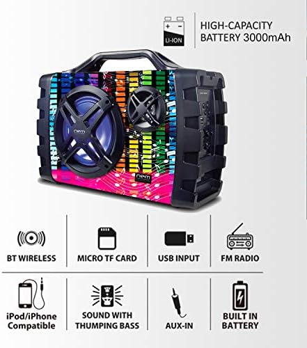 【POWERFUL AND RECHARGEABLE】This Stereo Speaker also features a long lasting built in rechargeable battery w/ 3000 mAh capacity. It is also equipped w/ a 6.5 inch subwoofer and 2X 2 inch speakers with 120 watts RMS to achieve that full range stereo sound system performance. Please charge fully for best performance.