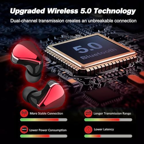 🎧 LATEST BLUETOOTH 5.0 & QUICK PAIRING – The ear buds wireless equipped with the latest Bluetooth 5.0 technology, the transmission speed is faster and the range is wider. Blue tooth ear buds adopt DSP strengthen anti-jamming, let you enjoy high-speed and smooth wireless music experience.Open the charging case cover and the cordless ear buds will automatically connect to the last paired device