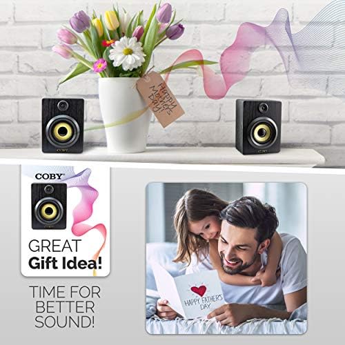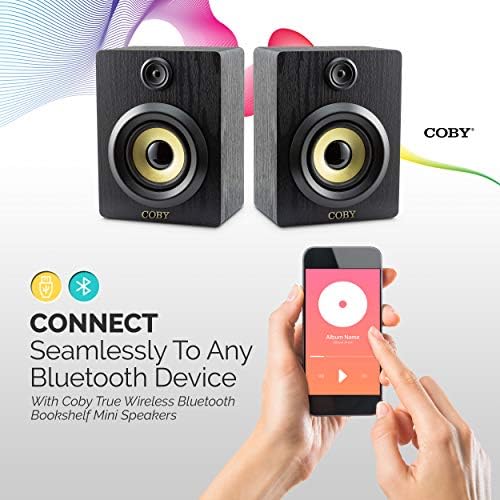 Coby Wireless Rechargeable Bluetooth Mini Speakers, Stereo Bookshelf Audio System for Home, Office, Computer, Black