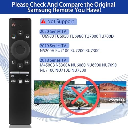 【COMPATIBLE TV SERIES】Remote control ONLY compatible with Samsung TV series with voice function, including KU6290, KU6270, KU7000, TU8000, TU8200, TU8300, TU850D, TU9000,Q60T, Q70T, Q80T, Q90T, Q800T, Q900TS, Q950TS, LST7, LS03, LS05, RU8000, RU9000, Q50, Q60, Q70, Q80, Q90, Q900, Q6F, Q7F, Q7C, Q8F, Q9F, Q60A, Q70A, Q80A, QN85A, QN90A, AU8000,MU630, MU650, MU700, MU800, MU850, MU6300, MU6500, MU7000, MU7500, MU8000, MU9000, NU8000, NU8500 Series etc.
