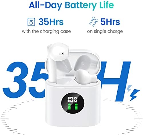 【Power Display & 35H Playtime】Features with smart LED digital display, you can easily know the battery consumption on both Bluetooth earphones and the charging case so you can master the best time to charge it. These Bluetooth earphones can last 5 hours of playtime on single charge and provides extra 30 hours playtime with charging case . Full music around you all-day long.