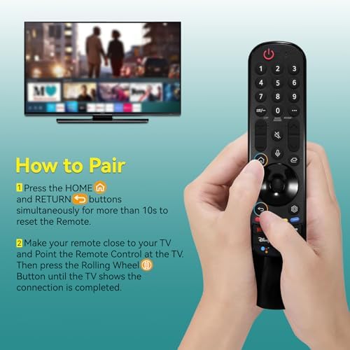 【How To Pair】①Press the “Home” and “Back” buttons at the same time for 5s, to deregister the Old Magic Remote from your TV. ②Press and Hold the “Home” and “Setting” buttons at the same time for more than 5s to register the New Magic Remote. ③Point the Magic Remote on your TV and press the Wheel “OK” on the remote control.