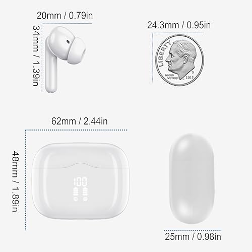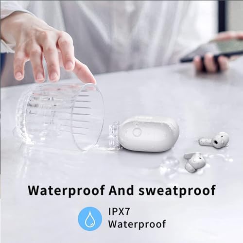 Wireless Earbud, Bluetooth 5.3 Headphones Deep Bass with 4 HD Mics, Wireless Headphones in Ear 40H Playtime, Bluetooth Earphones with Light Weight, IP7 Waterproof Ear Buds for Android IOS, Snow White