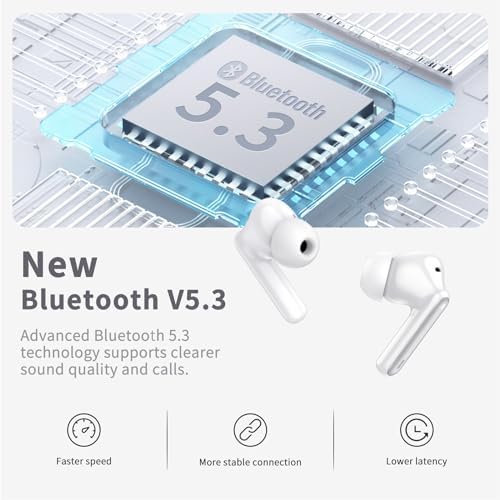 Fast and stable Bluetooth 5.3 connection: Bluetooth earphones that adopt Bluetooth 5.3 chips have an extremely low input latency, which means their audio stays synced with your device and will never stutter. This also makes the wireless earphones have a superior sound quality and strong signal, so that there is no disconnection in listening to music and offer stable and enough distance 10m connection for you.