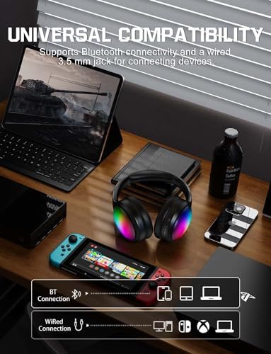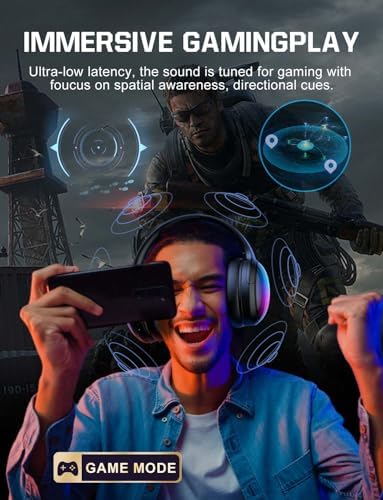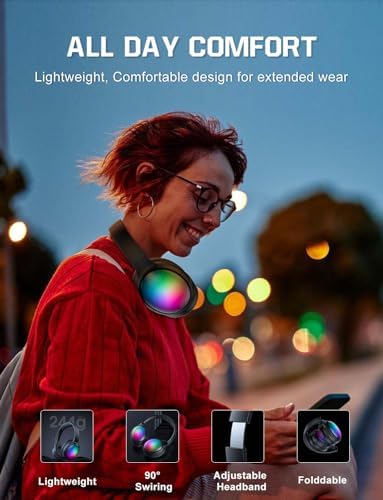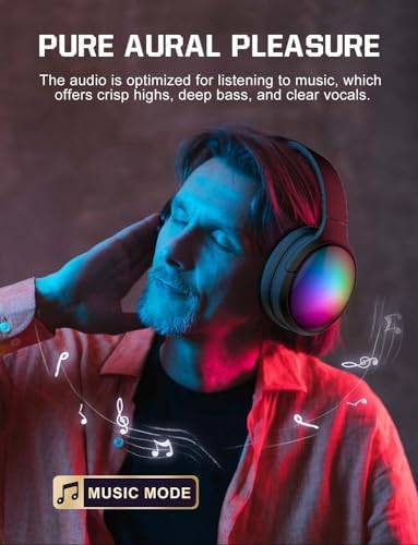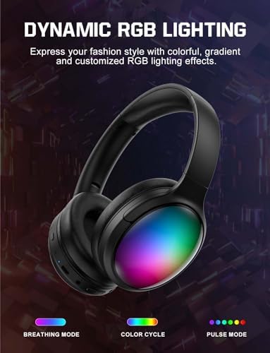 【Music & Game Mode】Featuring 40mm dynamic sound drivers, lightweight Bluetooth headset offer 3D stereo sound with a expansive soundstage and richer vocal details. In music mode, the sound is more realistic, pure, crisp highs, deep bass. Switching to game mode, rgb headset offers low latency and precise positional audio, enhancing your gaming experience.
