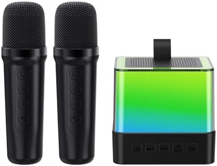 Mini Karaoke Machine with 2 Wireless Microphones, Portable Wireless Light Show Bluetooth Speaker for Adult